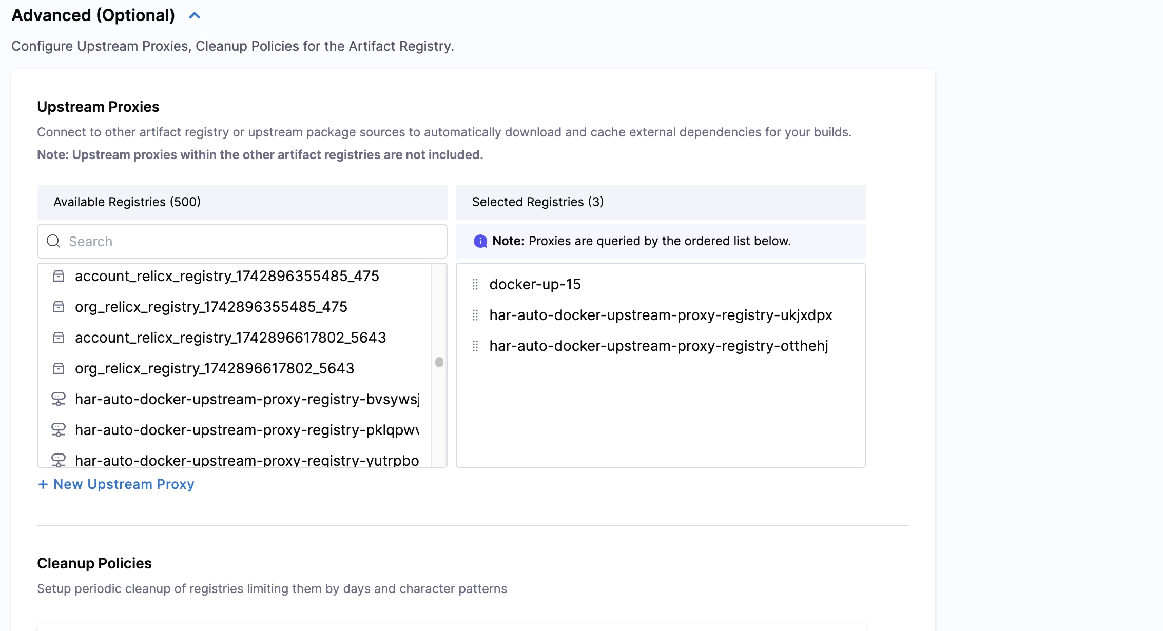 - Under Selected proxies, arrange the order of proxies. When the registry receives a request, it will query the proxies in order from top to bottom.