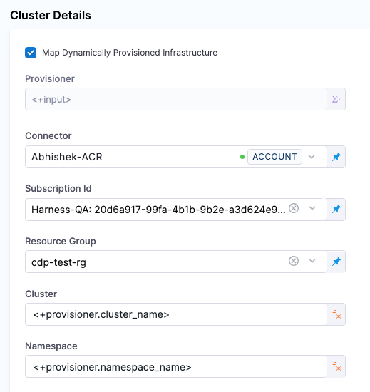 1. In the Harness infrastructure, enable the option Map Dynamically Provisioned Infrastructure.