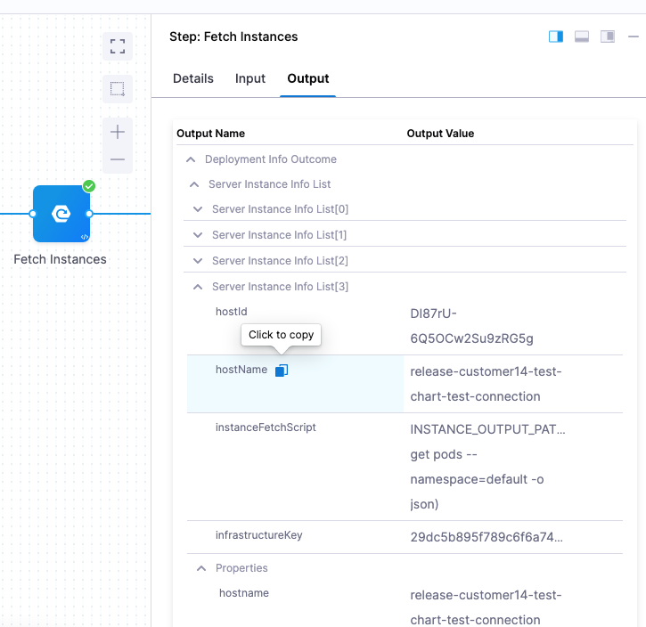 - In your Harness Pipeline stage Execution, review the automatically added Fetch Instances step, and move it to wherever you want to execute the script from your Deployment Template.