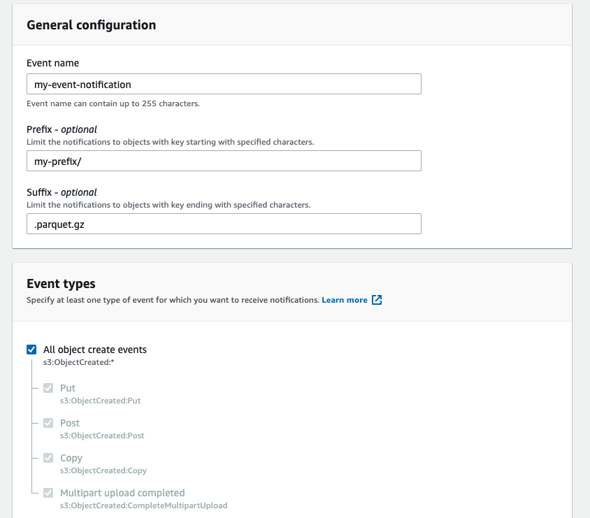 Configure S3 event notifications