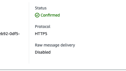 5. Click Create subscription. On the confirmation page, confirm that Check status is "confirmed” and Protocol is “https."