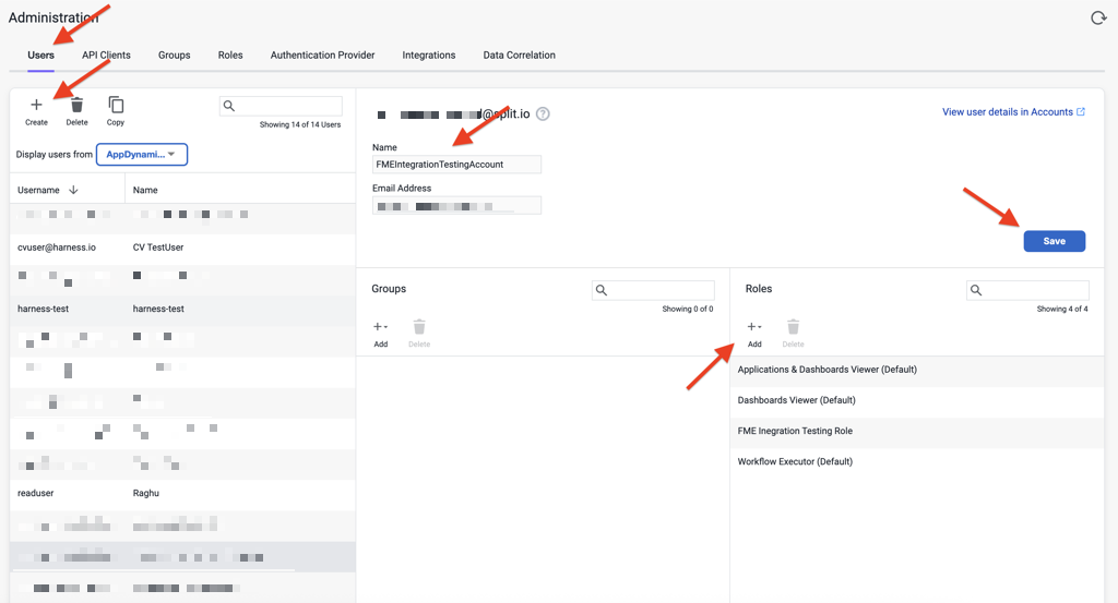 To connect Harness FME to Splunk AppDynamics, create an Administrator role and a user within that role.
