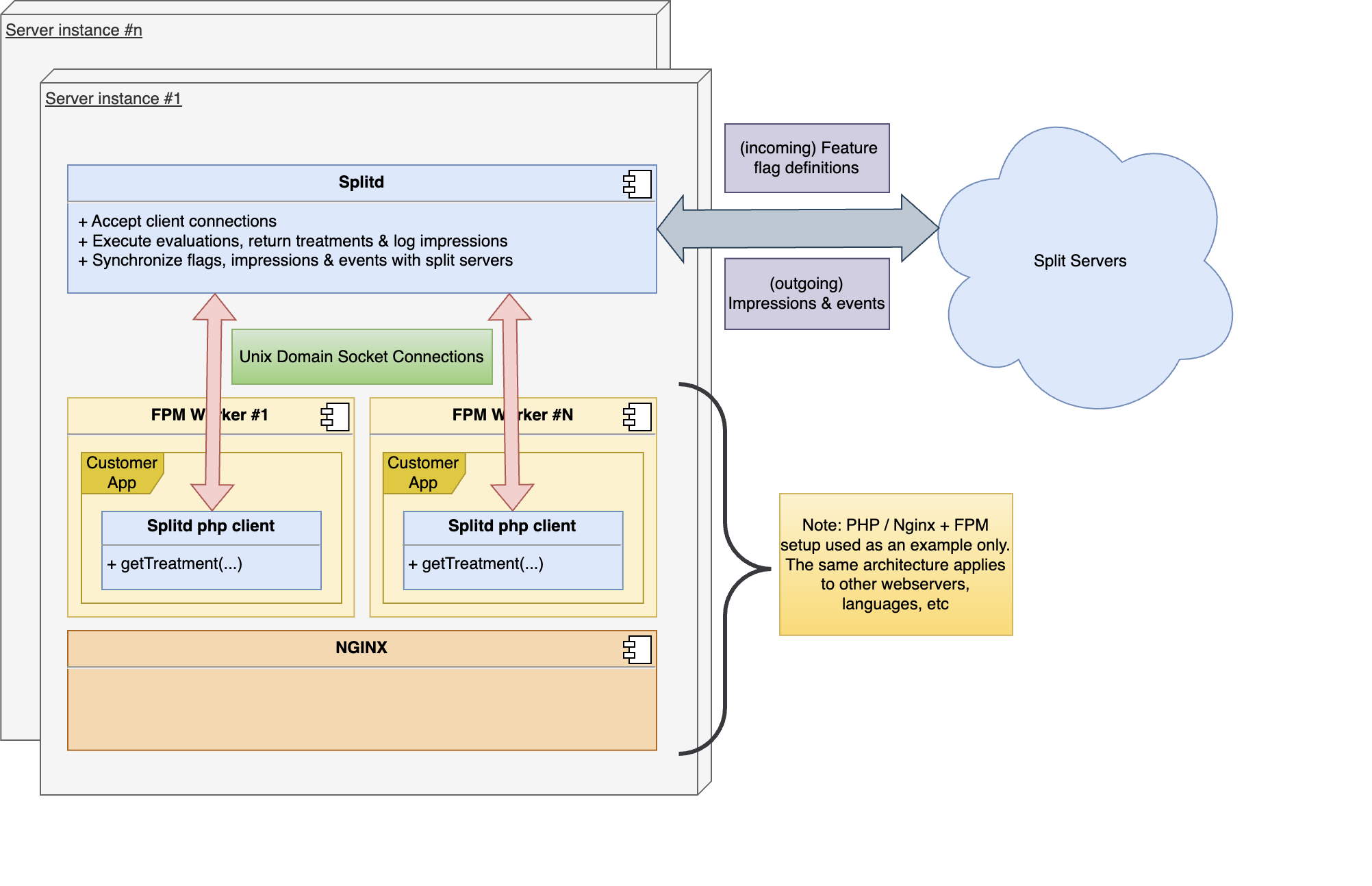 Splitd can be used if you are working in a language that does not have native capability to keep a shared local cache, such as PHP. You can use splitd in combination with an FME Thin SDK (see Supported Thin SDKs) as an alternative to using Split Synchronizer and Redis with a non-thin FME SDK. Splitd easily scales to high traffic volumes.