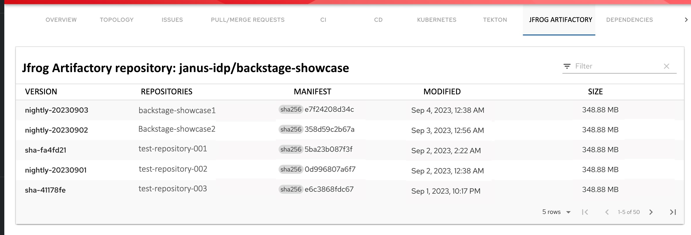 • Artifact details are correlated to IDP entities using an annotation added in the entity's catalog-info.yaml file.