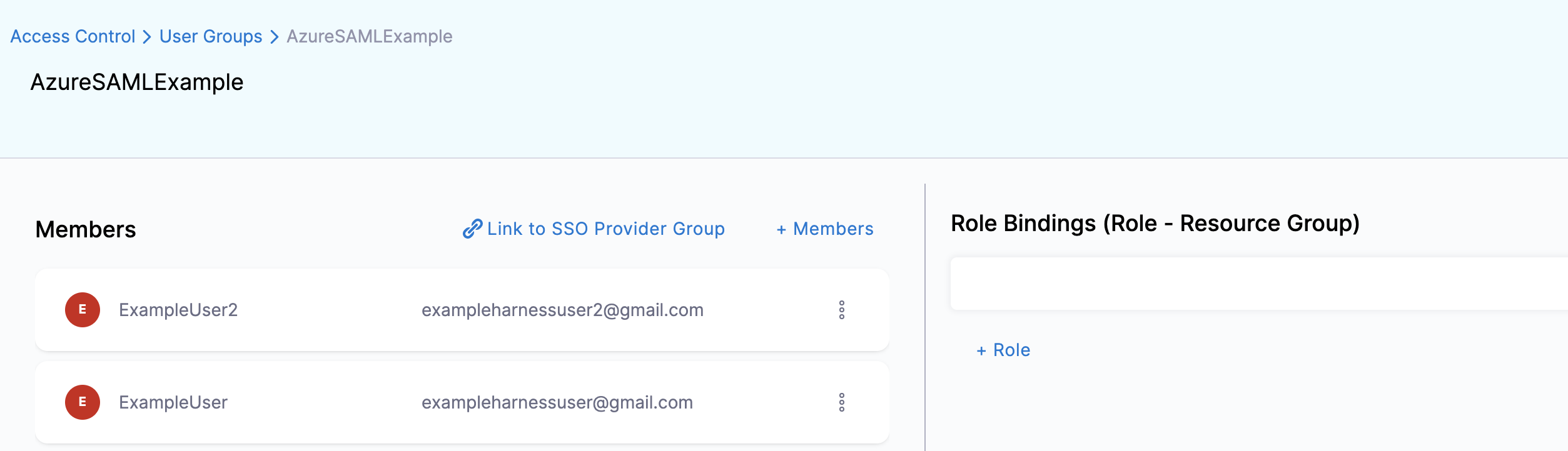 4. In your Harness account in the other browser window, check the User Group you linked with your SAML provider. The user that logged in is now added to the User Group, receiving the authorization associated with that User Group.