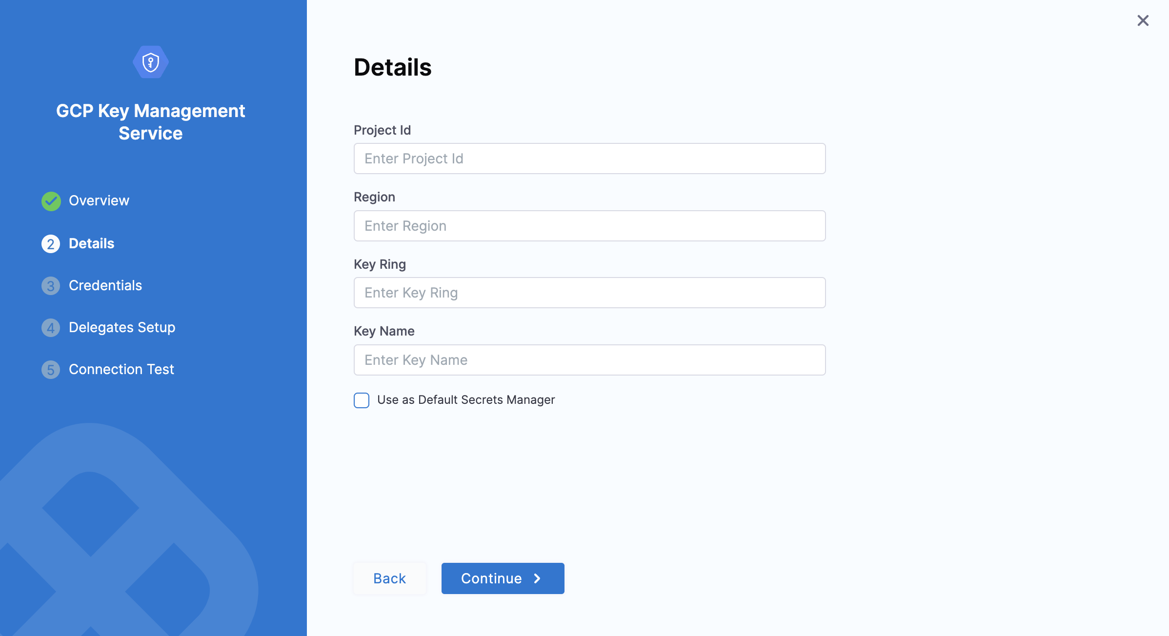 To obtain the values for the Details settings, you'll need a Google Cloud Symmetric Key.