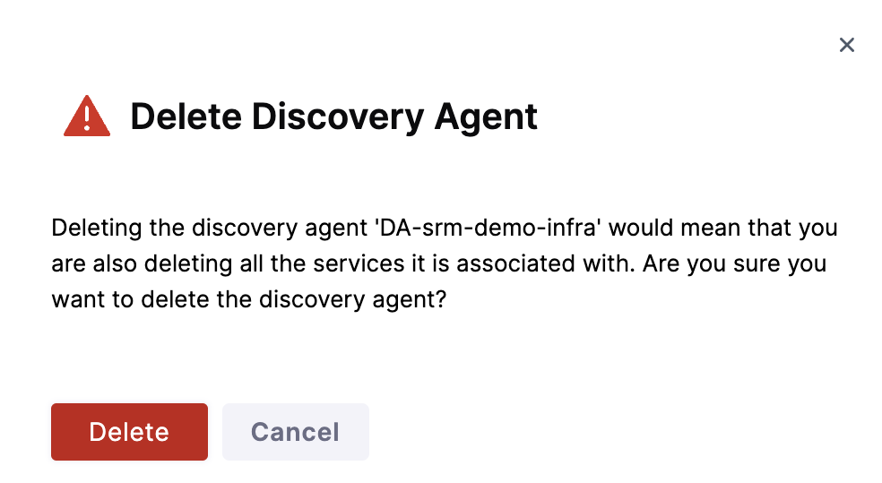 1. To delete a discovery agent, navigate to the agent you want to delete and select Delete.