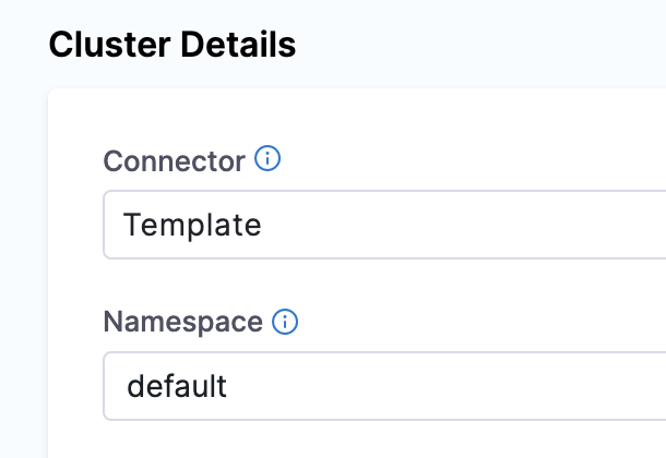 4. In Connector, select a connector from the list. To create a new connector, go to Kubernetes cluster connector settings reference and Add a Kubernetes cluster connector.