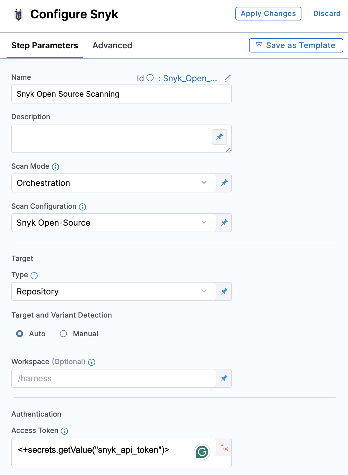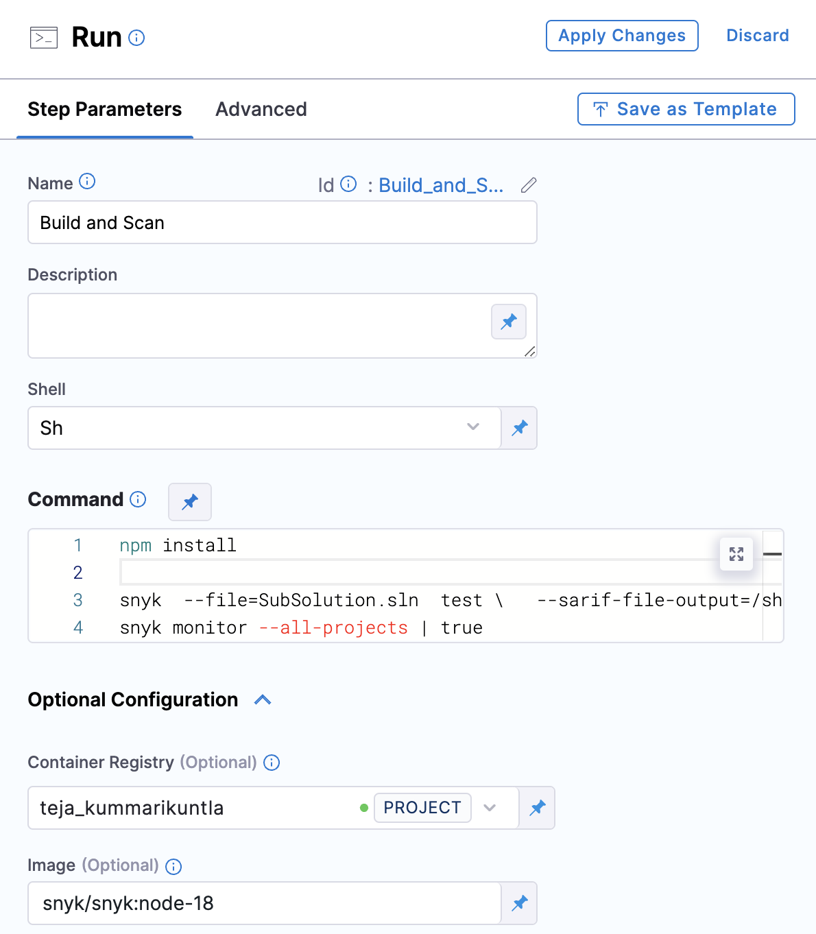 Refer to Snyk step configuration document to learn more about all the fields and their configurations.