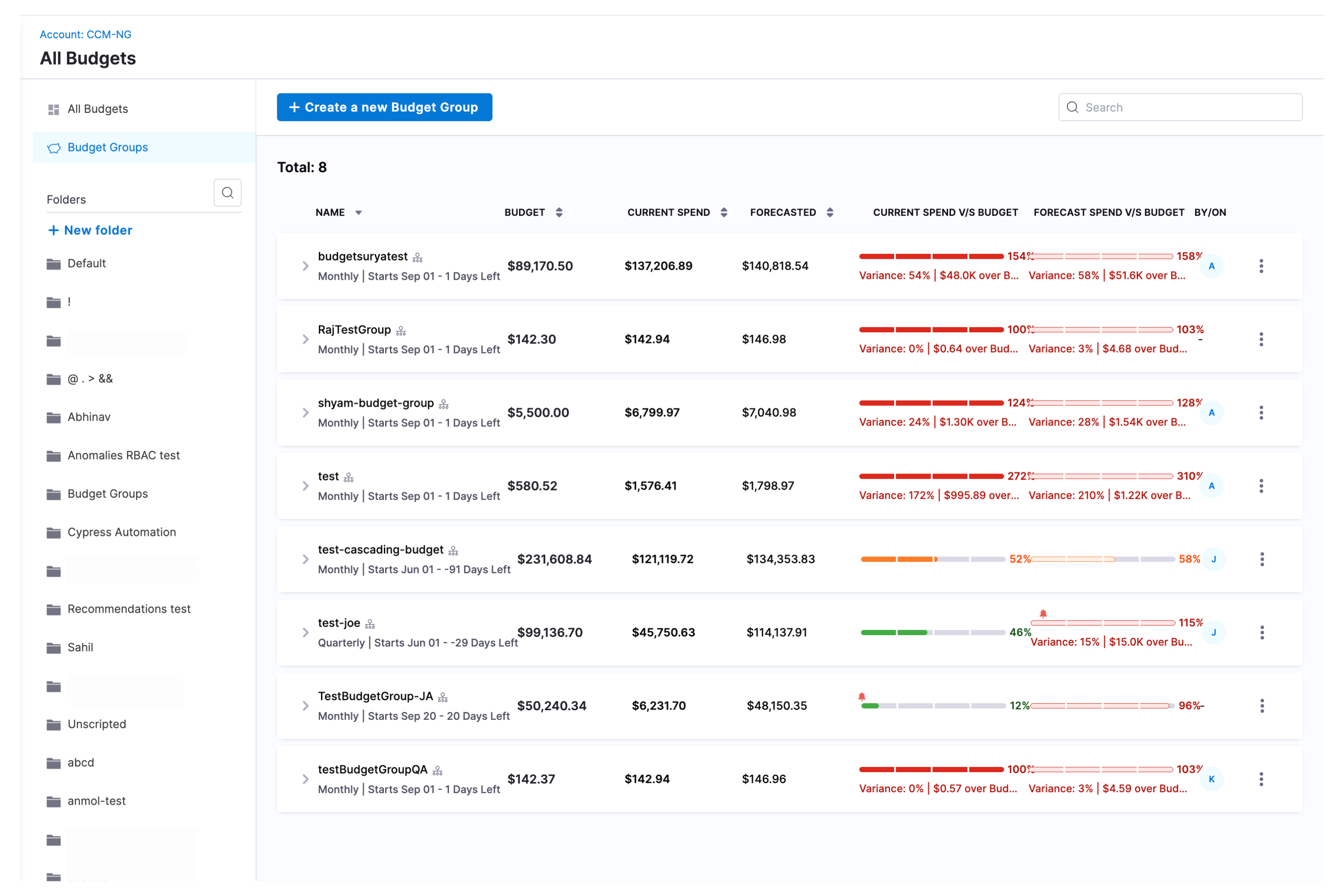 Folder ID Now Mandatory for Budget Creation via API: To ensure better organization and visibility of budgets in the UI, the folderId field is now mandatory when creating budgets through the API. Previously, budgets created without a folder ID did not appear in the UI, leading to inconsistencies in reporting. With this update, any API request that omits the folderId will return an error. This change ensures that all budgets are created under the correct folders, improving overall organization, visibility, and reporting accuracy. Users integrating with the API should update their automation or scripts to include the folderId parameter to avoid errors during budget creation. [CCM-27057]