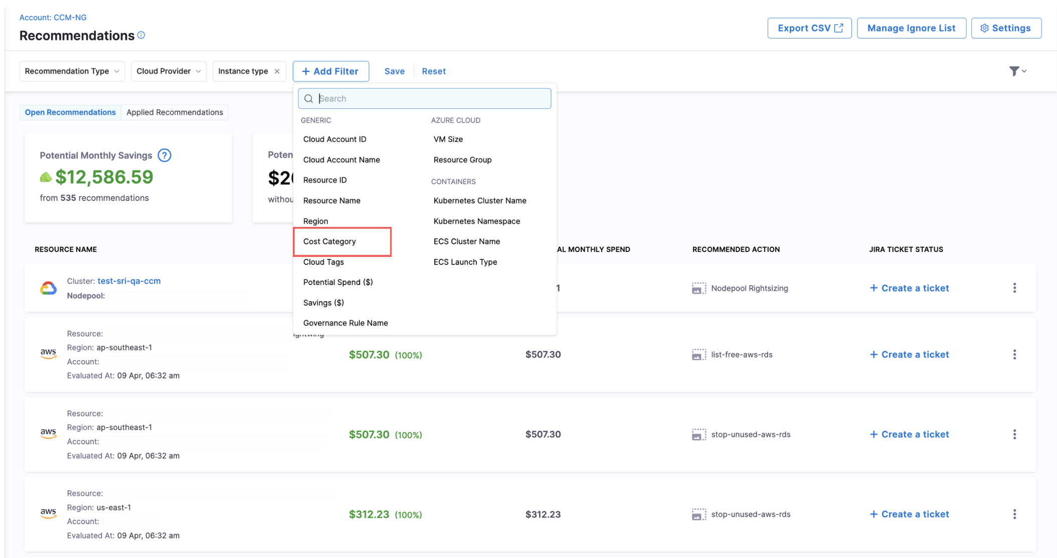 New Filters in Cloud Integration: We have added new filters on Account Settings > Integration for Cloud Cost.